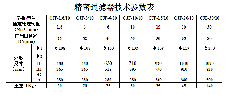 精密過濾器主要是除去壓縮氣中的油、液態(tài)水霧、塵。該系列產(chǎn)品具有效率高、使用方便、運(yùn)行成本低,該產(chǎn)品根據(jù)不同的階段分為C/T/A三級。C級過濾精度為≤3μm除99.9%游離狀態(tài)的水分;T級過濾精度為≤1μm除99.99%游離狀態(tài)的水分;A級過濾精度為≤0.01μm除99.999%游離狀態(tài)的水分。